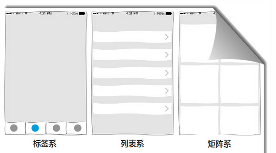 终端UI设计上最基本的导航方式分为三种:标签式、列表式、矩阵式。
